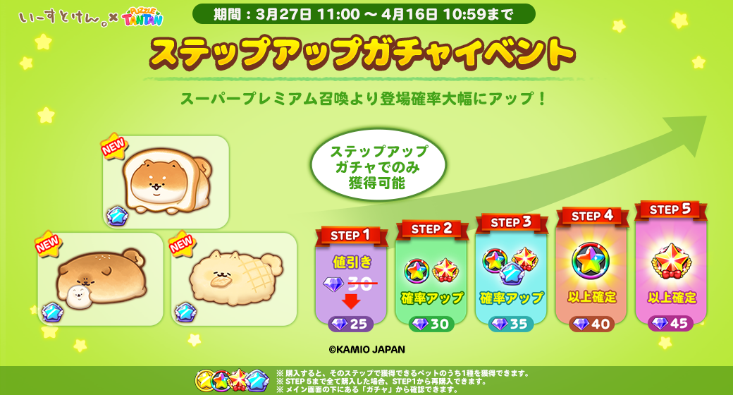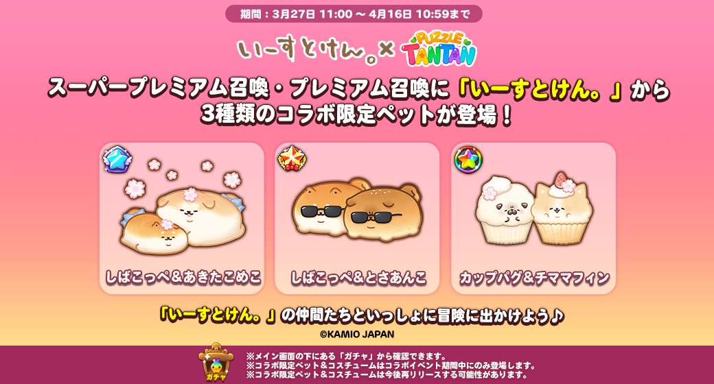 プレミアムガチャとステップアップガチャから『いーすとけん。』の仲間たちが登場します!