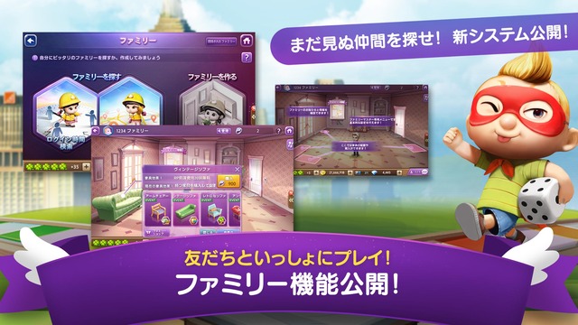 LINE ゲットリッチ アップデート 2017年07月27日 【LINE ゲットリッチ】新機能「ファミリー」が登場! 友だちとリアルタイム対戦できるボードゲーム「LINE ゲットリッチ」に、新機能「ファミリー」が追加になりました。ファミリーに入れば特典もいっぱい!限定のミッションにも参加できます。