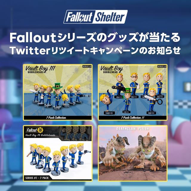 LINE POD キャンペーン 2022年01月21日 【LINE POD】『Fallout Shelter』リリース記念、グッズプレゼントキャンペーン! PC向けゲームプラットフォーム「LINE POD」にて好評配信中のPCゲーム『Fallout Shelter』において、Falloutシリーズのグッズが当たるTwitterフォロー&リツイートキャンペーンを開催します。今すぐキャンペーンをチェックしてくださいね!『Fallout Shelter』のゲーム紹介は