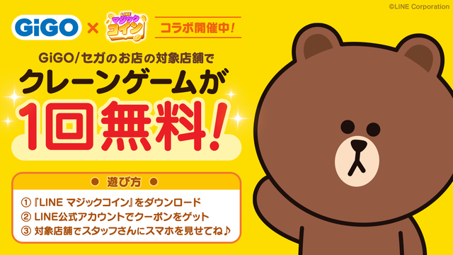 LINE マジックコイン アップデート 2022年09月16日 【LINE マジックコイン】アミューズメント施設『GiGO』でクレーンゲームが1回無料で遊べるコラボキャンペーンを開始! カジュアルコインゲーム「LINE マジックコイン」では、本日よりアミューズメント施設『GiGO』とのコラボレーションキャンペーンを開催します!ぜひ、チェックしてくださいね!■「LINE マジックコイン」×『GiGO』コラボキャンペーン本日よりアミューズメント施設『GiGO』と